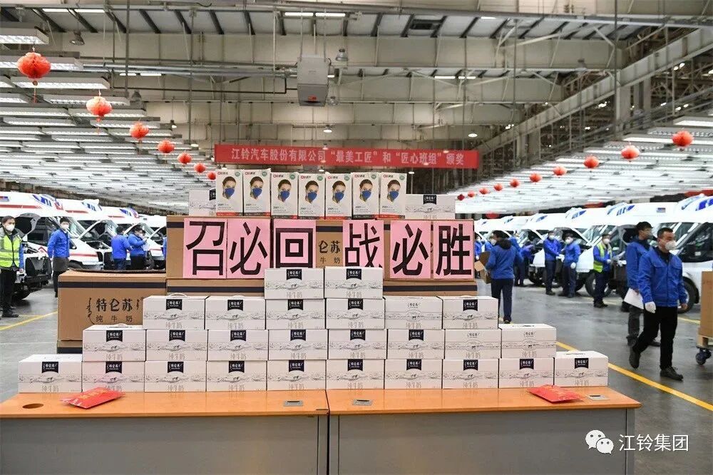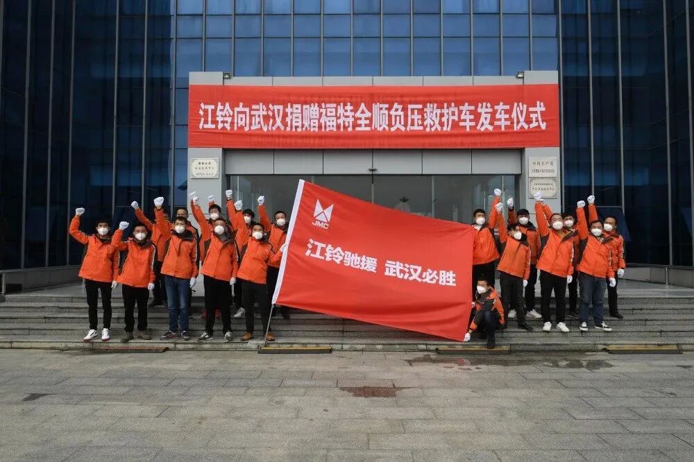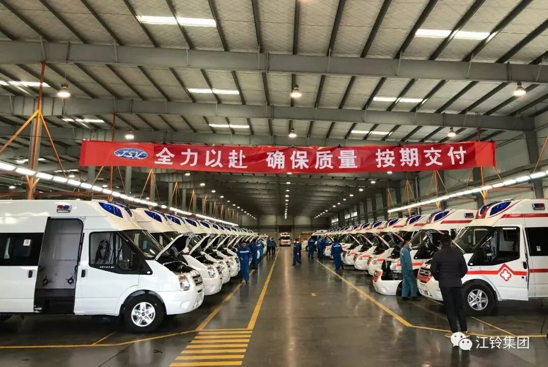新年伊始,挑战不期而至,新冠肺炎疫情牵动着全国人民的心。疫情就是命令,防控就是责任。江铃人牢记“产业报国”使命,积极响应,全力以赴,许多员工放弃家人团聚的机会,加班加点赶制江铃全顺救护车,为这场抗疫之战贡献着我们江铃人的力量。从大年初五第一辆全顺负压救护车下线,到大年初九全国首批交付给武汉急救中心两辆全顺负压救护车,再到现在共完成180多辆全顺负压救护车交付给各大医院,体现了我们江铃人敢打硬仗、能打硬仗的工作作风,彰显了我们江铃人主动担当、迎难而上的奋斗精神。在此,我谨代表江铃集团党委和董事局,向一直奋斗在一线的同志们致敬,并向全体同志们表示衷心的感谢!